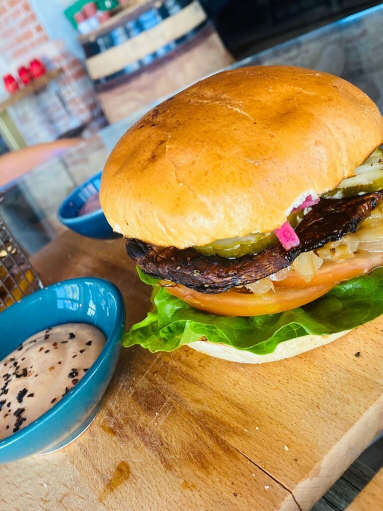 Vi serverer burgere med oksekød eller vegetar. Burgermenuen kommer med sprøde fritter, chili- eller alm mayo og sodavand